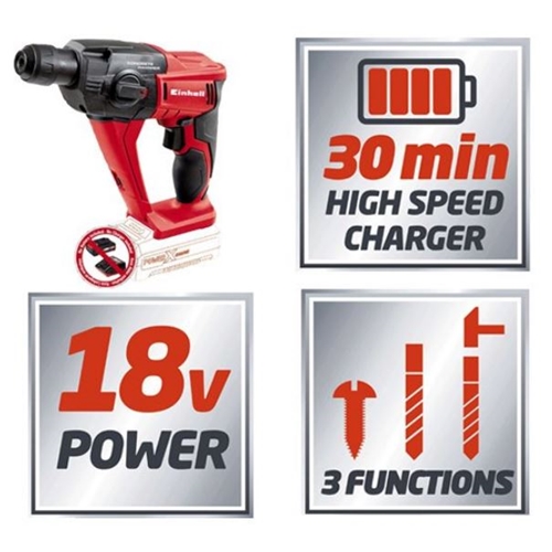 - גוף פטישון נטען 18V בעל יכולת קידוח בטון של 12 מ"מ שנתיים אחריות מבית Einhell