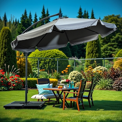 (3 מטר) והחצאית ההיקפית מספקים שטח הצללה מוגדל והגנה מקסימלית מפני השמש.