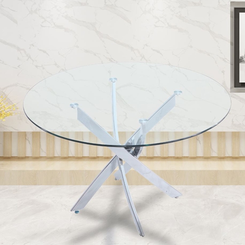 שולחן אוכל זכוכית עגול 120 ס"מ עם רגלי כרום ונציה