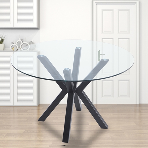 שולחן אוכל עגול 120 ס"מ זכוכית מחוסמת עם רגלי מתכת