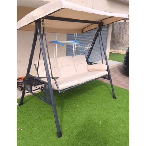 נדנדת גינה ל-3 אנשים עם גגון מתכוונן – כולל מגשים וכריות נוחות