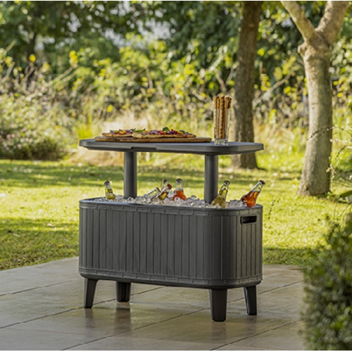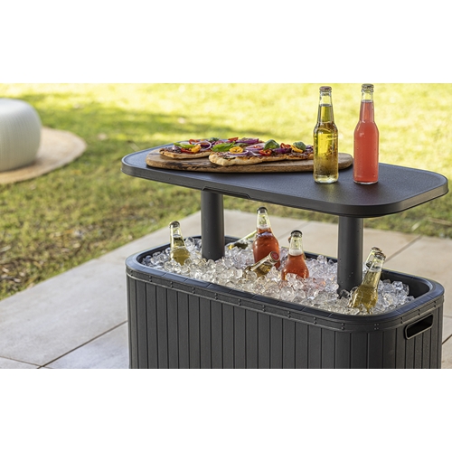 שולחן קוקטיילים טרנדי משולב בצידנית גדולה, ומתאים במיוחד לאירוח חברים או משפחה.