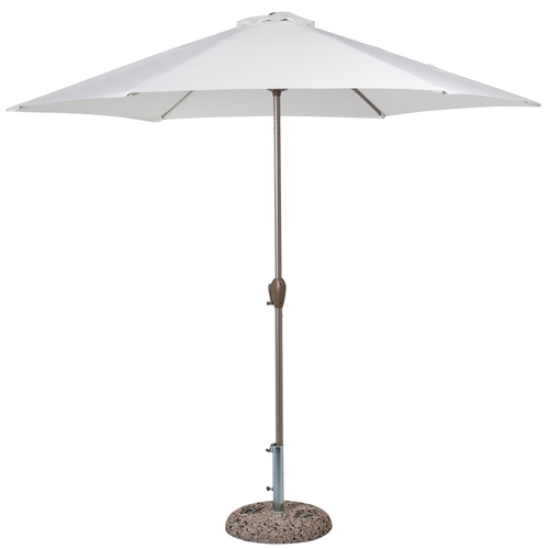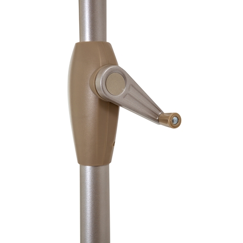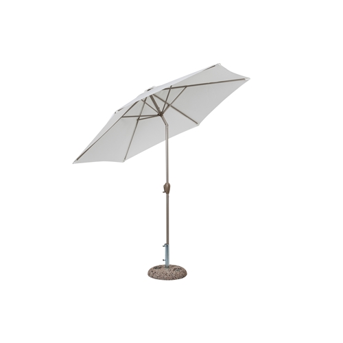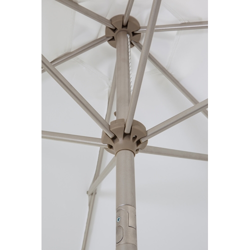 שמשיה עשויה אלומיניום ובעלת צורה עגולה בקוטר 2.70 מטר עם אפשרות להטיית ראש השמשייה לצד להגנה מקסימלית מהשמש.