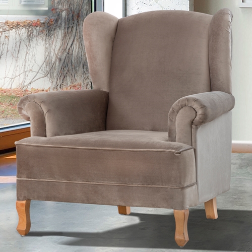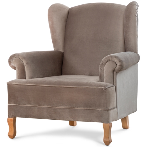 כורסה היושבת על בסיס שלדת עץ מלא חזק ועמיד, עם רגלי עץ מלא חזקות ואלגנטיות.