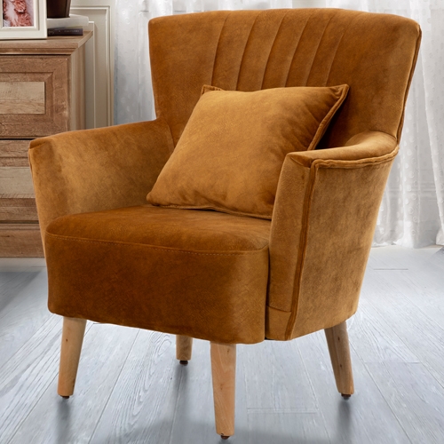 - כורסה יוקרתית העשויה שלדת עץ מלא בד קטיפה רך קל לניקוי ומפנק עם רגלי עץ מלא מבית LEONARDO