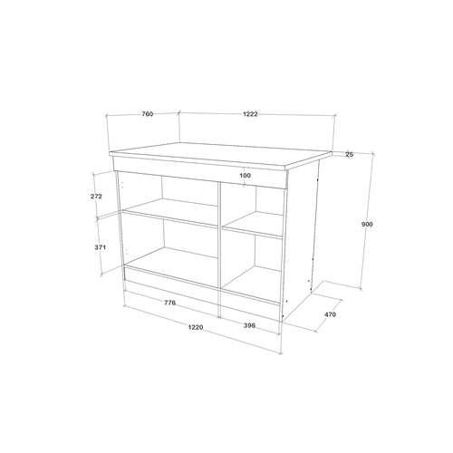 עיצוב חכם וחסכוני במקום: מידות אידיאליות (רוחב 122 ס"מ, אורך 76 ס"מ, גובה 90 ס"מ) המתאימות למגוון גדלים של מטבחים.