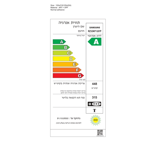 - מקפיא עומד 330 ליטר Samsung RZ32M71207F דירוג A