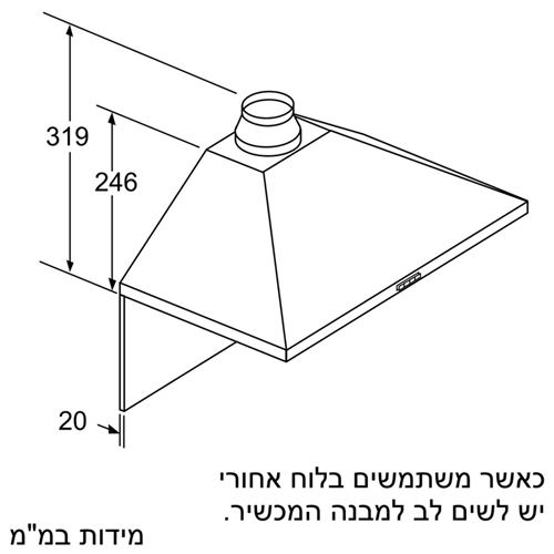 קוטר צינור הפליטה Ø 150 מ"מ (Ø 120 מ"מ מצורף)