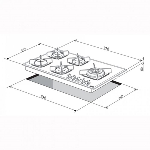 - כיריים 90 ס"מ זכוכית דגם MARTE 90 עיצוב שטוח