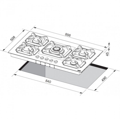 עומק: 4.5 ס"מ + 2 ס"מ לאוורור מתחת לכיריים