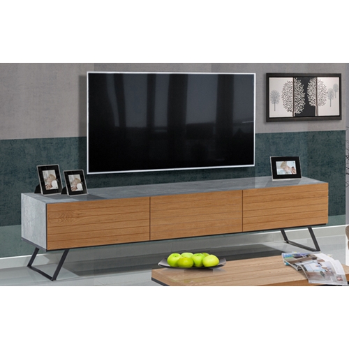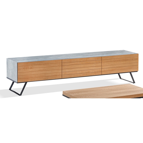 מזנון המשלב צביעה בדוגמת שיש אפור וגימור עץ לשדרוג הסלון