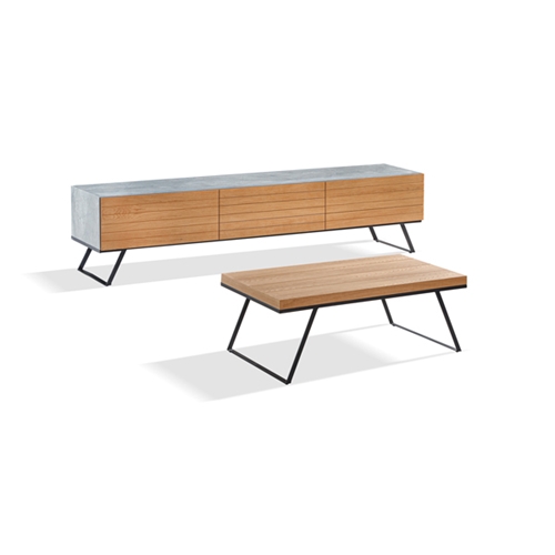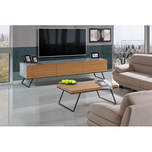 סט מזנון ושולחן המשלב צביעה בדוגמת שיש אפור וגימור עץ לשדרוג הסלון