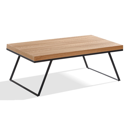 השולחן הינו שולחן מלבני והוא עשוי עץ ורגלי מתכת שחורות.