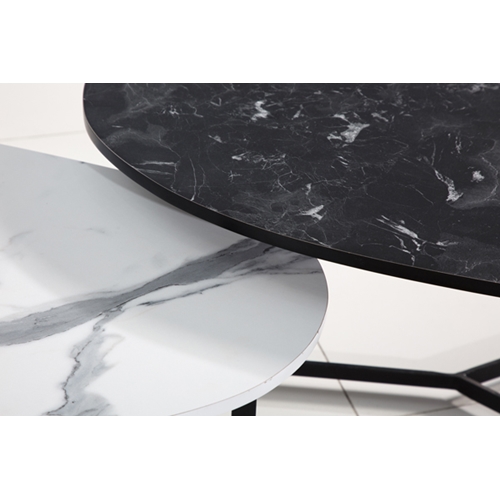 עשויים + MDFצביעה בדוגמת שיש שחור, השולחן הקטן – צביעה בדוגמת שיש לבן.