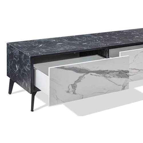 מזנון יוקרתי בעל גימור מיוחד MDF הכולל צביעה בדוגמת שיש לבן ושיש שחור