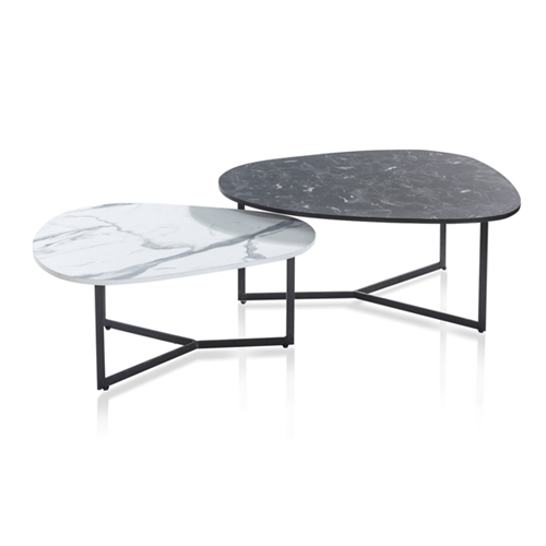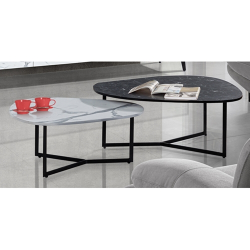 MDF עם צביעה בדוגמת שיש שחור, השולחן הקטן – צביעה בדוגמת שיש לבן.