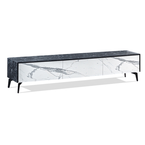 מזנון – מסגרת MDF הכולל צביעה של דוגמת שיש שחור ומגירות בצביעה בדוגמת שיש לבן.