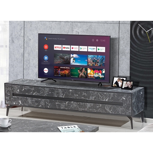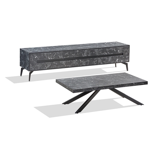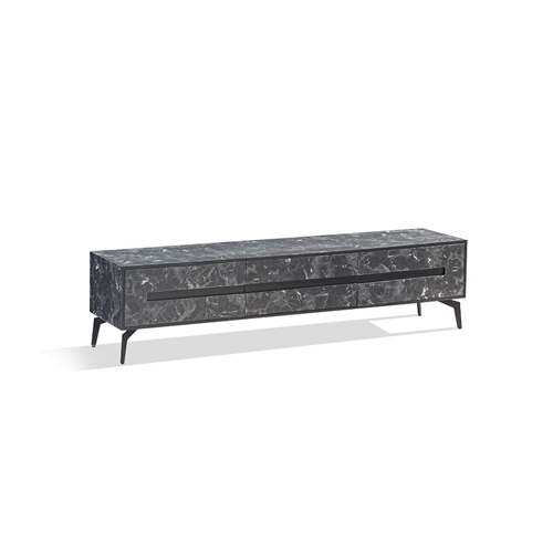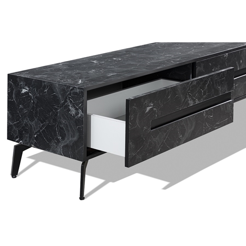 מסגרת המזנון וגם המגירות MDF בצביעה של דוגמת שיש שחור.