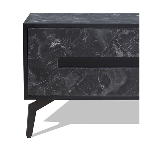 מסגרת המזנון וגם המגירות – MDF בצביעה של דוגמת שיש שחור.