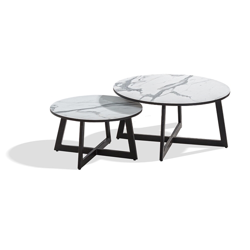 2 שולחנות עגולים, צביעה בדוגמת שיש לבן.