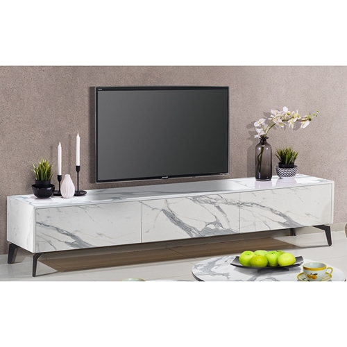 מסגרת המזנון וגם המגירות MDF בצביעה של דוגמת שיש לבן.