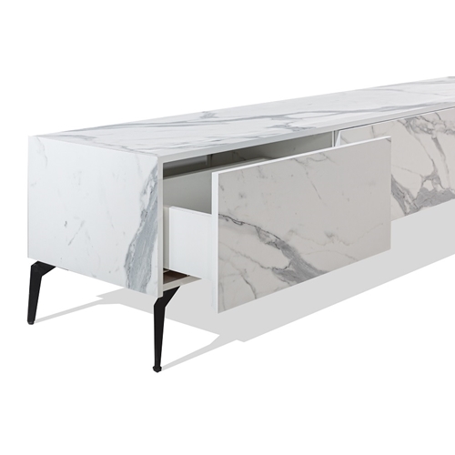 מסגרת המזנון וגם המגירות MDF בצביעה של דוגמת שיש לבן.