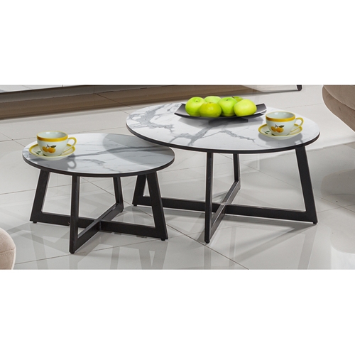 2 שולחנות עגולים, צביעה בדוגמת שיש לבן.