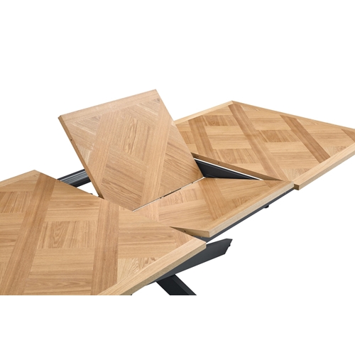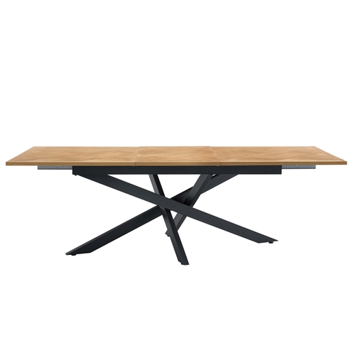 שולחן פינת אוכל עוצמתי עם רגלי ברזל מסיביות. פתיחת מנגנון נשלפת במרכז.
