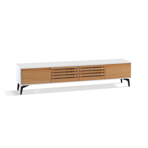 פלטות עליונות בגימור פורניר אלון טבעי ורגליים עגולות מברזל שחור.