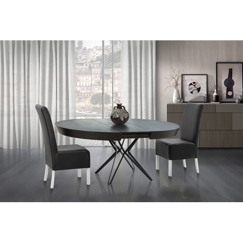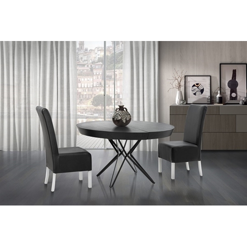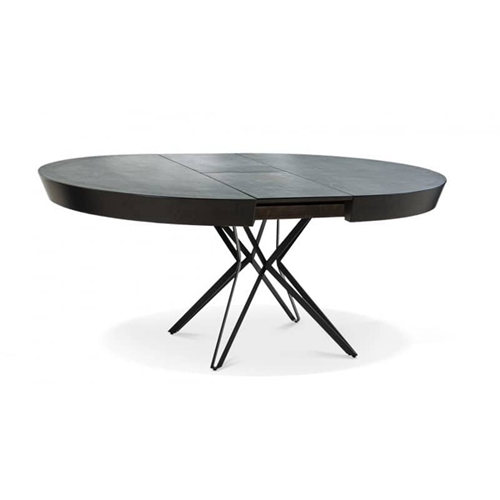 - שולחן פינת אוכל עגול יוקרתי בגימור דמוי שיש אפור ורגלי ברזל שחור מבית LEONARDO