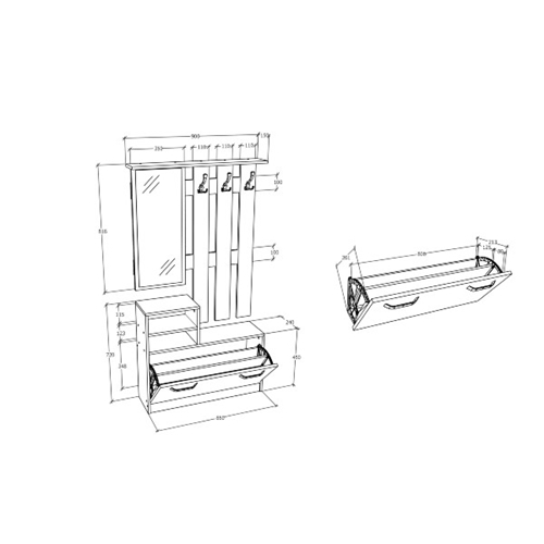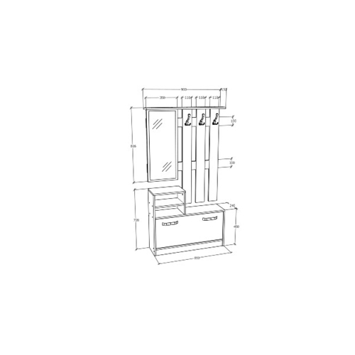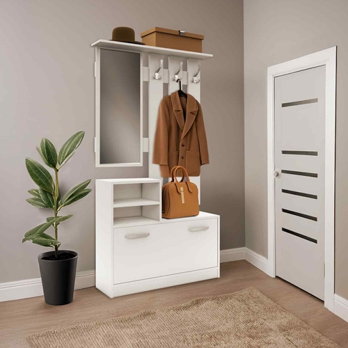 כולל מקום אחסון לנעליים מראת גוף וווי תלייה