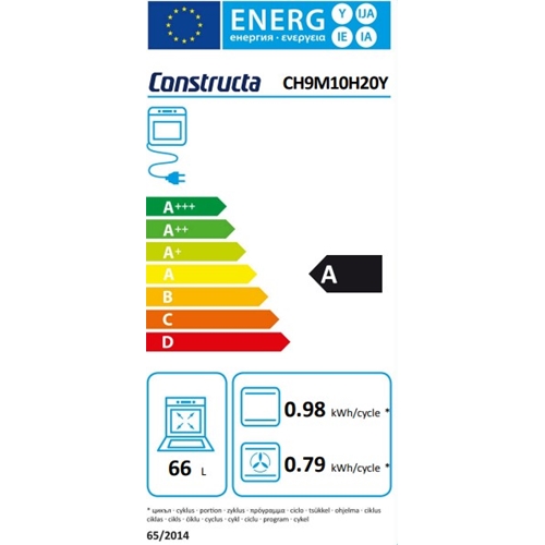 - תנור אפייה משולב כיריים גז בנפח 66 ליטר בעיצוב לבן תוצרת CONSTRUCTA דגם CH9M10D20Y