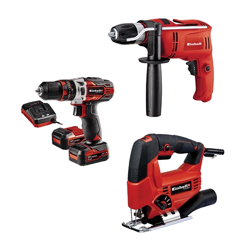 - סט 3 כלים מושלם : מברגת ליתיום V12 + מקדחה/מברגה חשמלית רוטטת 650W + משור אנכי חשמלי 550W - שנתיים אחריות מבית EINHELL הגרמנית