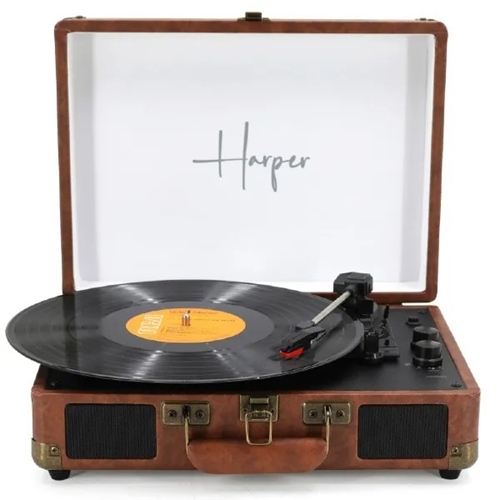 למה כדאי לקנות פטיפון BT מזוודה דגם Harper HRT-10 הארפר חום ב-P1000