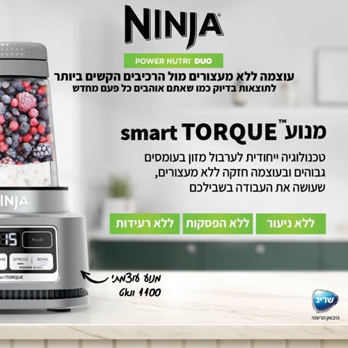 שייקר עוצמתי NINJA POWER NUTRI™ DUO נינג'השייקר עוצמתי NINJA POWER NUTRI™ DUO נינג'ה דגם: CB103 - מידע נוסף