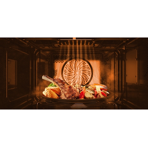 בלעדי לסמסונג טורבו אקטיבי ענק המותקן בצד האחורי של תא האפיה - ומזרים אוויר חם לבישול ואפיה מהירים כמו בתנור אפיה רגיל