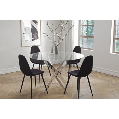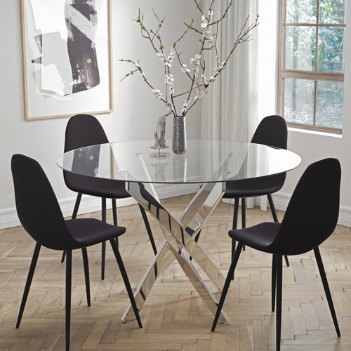 פינת אוכל עגולה 120 ס"מ עם 4 כיסאות מרופדיםפינת אוכל עגולה 120 ס"מ עם 4 כיסאות מרופדים דגם: ונציה-כרמל - מידע נוסף