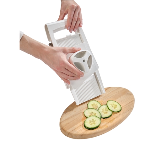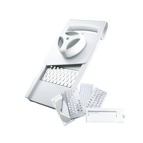 מנדולינה ידנית רב תכליתית איכותית במיוחד, בעלת 5 להבי חיתוך בצורת V לעבודה אידיאלית במטבח. המנדולינה מתאימה לחיתוך פרוסות, קיצוץ והכנת מזון לתינוקות, גירוד תפוח אדמה וגם כן להכנת לביבות עם פומפיות גסות ודקות. מגיעה עם ידית אחיזה נוחה במיוחד.