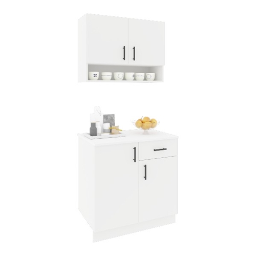 - זוג ארונות מטבח עליון ותחתון ברוחב 80 ס"מ בצבע לבן דגם אופרה OPERA מבית TUDO DESIGN