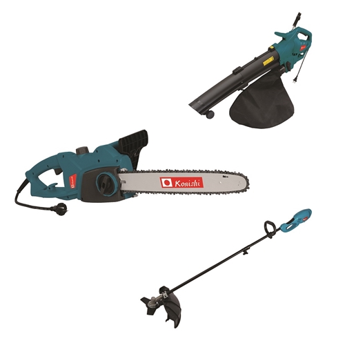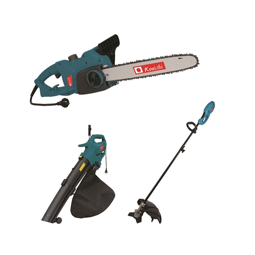 - סט גינון 3 כלים : מפוח עלים חשמלי W 3000 שק איסוף 45 ל' + משור שרשרת חשמלי בהספק W 1600 + קוצץ קנטים 2 ב1 החזק מסוגו בארץ - הפתרון המושלם תוצרת KONISHI