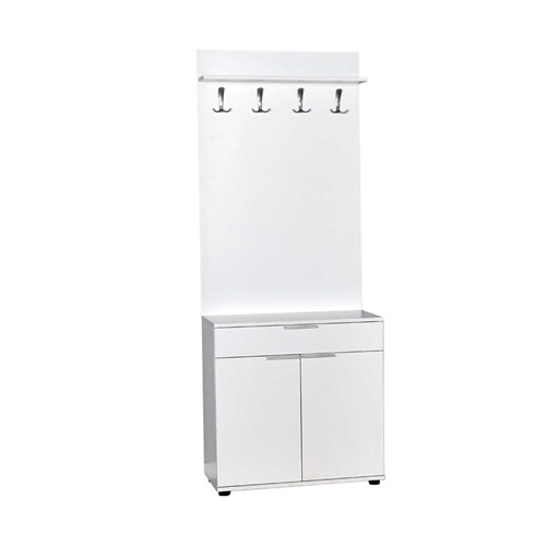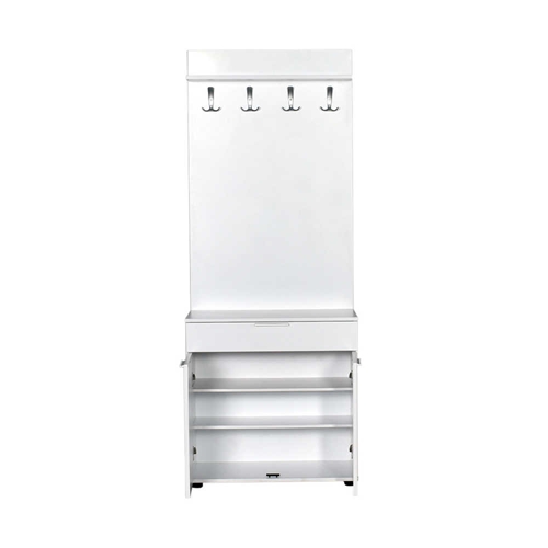 שידה מעוצבת לכל מה שאתם צריכים בכניסה לביתכם: מתלה למעילים לכובעים, מגירה לארנקים, מפתחות ומסמכים, מדפים סגורים לנעליים או לאחסון כללי וגם מדף עליון לפריטי עיצוב לפי טעמכם..