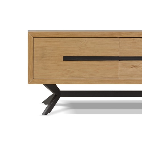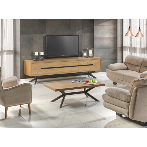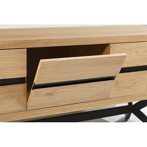 המזנון והשולחן עשויים MDF בציפוי פורניר בעיטור פס שחור מעוצב.