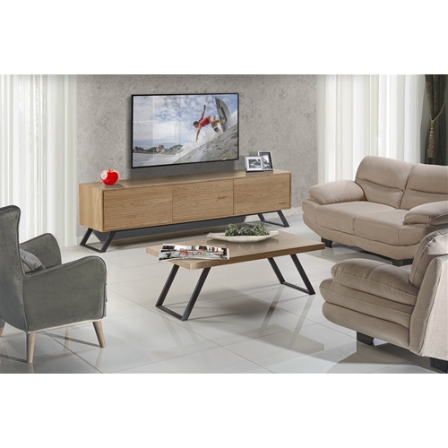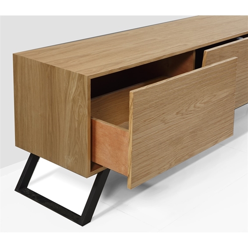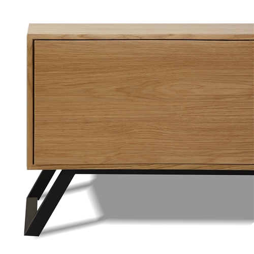 גוף המזנון עשוי MDF איכותי בציפוי פורניר אלון טבעי והוא יושב על מסגרת ברזל שחור (צוקל) ושתי רגלי ברזל חזקות אלכסוניות.