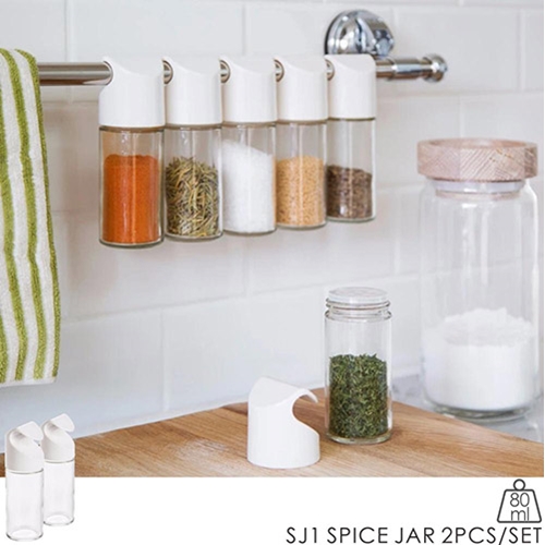 4 צנצנות תבלינים SJ1 מכסה ABS לבן/ צנצנת זכוכית