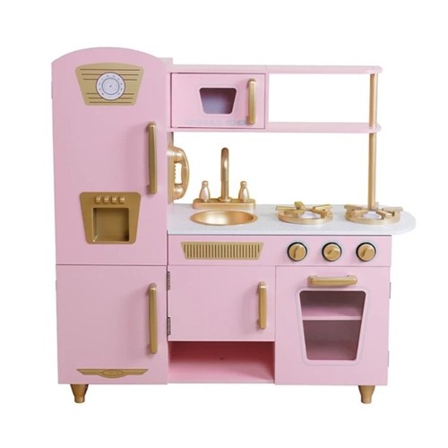 מטבח לילדים בעיצוב וינטג' בגוון ורוד וזהב דגם לילך