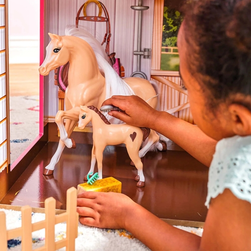 הבית גדול וגבוה ומאפשר משחק עם בובות עד גובה 30 ס"מ (בובות ברבי)