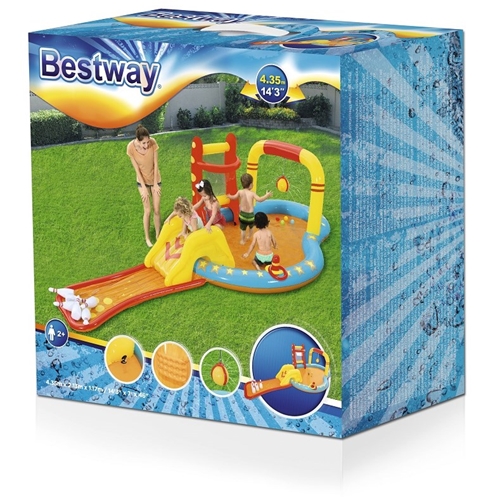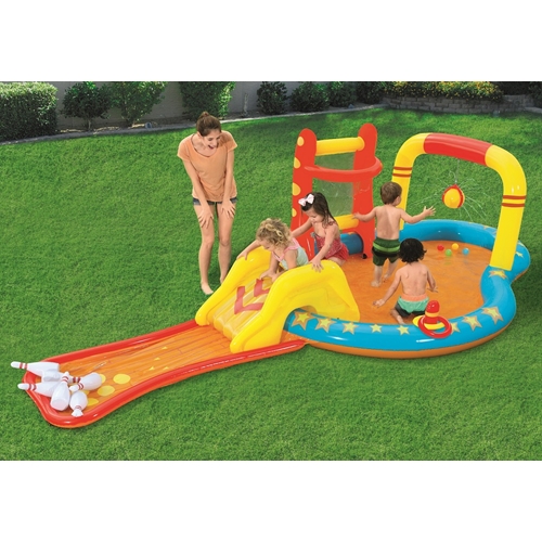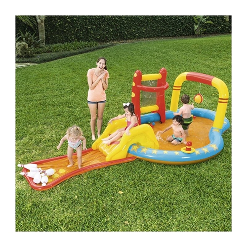 בריכת בסטווי דגם ילדים בעיצוב באולינג ואביזרי ספורט כיפיים במיוחד.