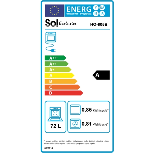 תנור בנוי 6 תוכניות נפח 72 ל' SOL שחור דגם HO-605B - מידע נוסף