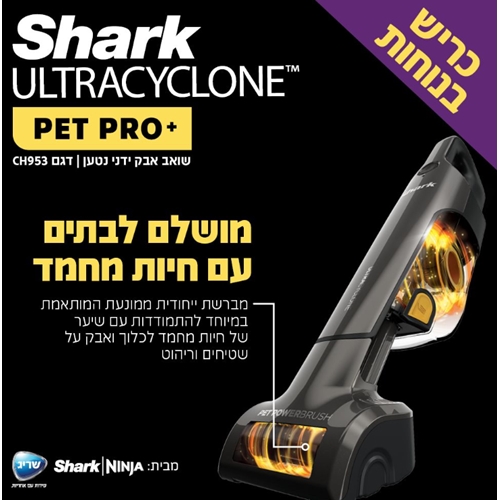 אצלנו, קניות באינטרנט של שואב אבק ידני נטען ™ULTRACYCLONE דגם CH953 SHARK שוות לך פי אלף!