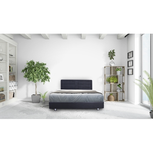 מיטה עשויה עץ מרופדת בדמוי עור המגיעה בשלושה צבעים לבחירה: שחור, לבן אפור.